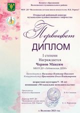 Поздравляем Чернова Максима, преподавателя Василенко Владимира Павловича и концертмейстера Прилипкину Ольгу Владимировну с дипломом 1 степени!!!